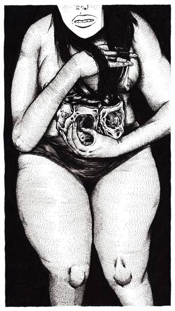 He is attracted to cartoons and his drawings is filled with quirky humor and can sometimes be vulgar. A depiction of the lavish modern life society.