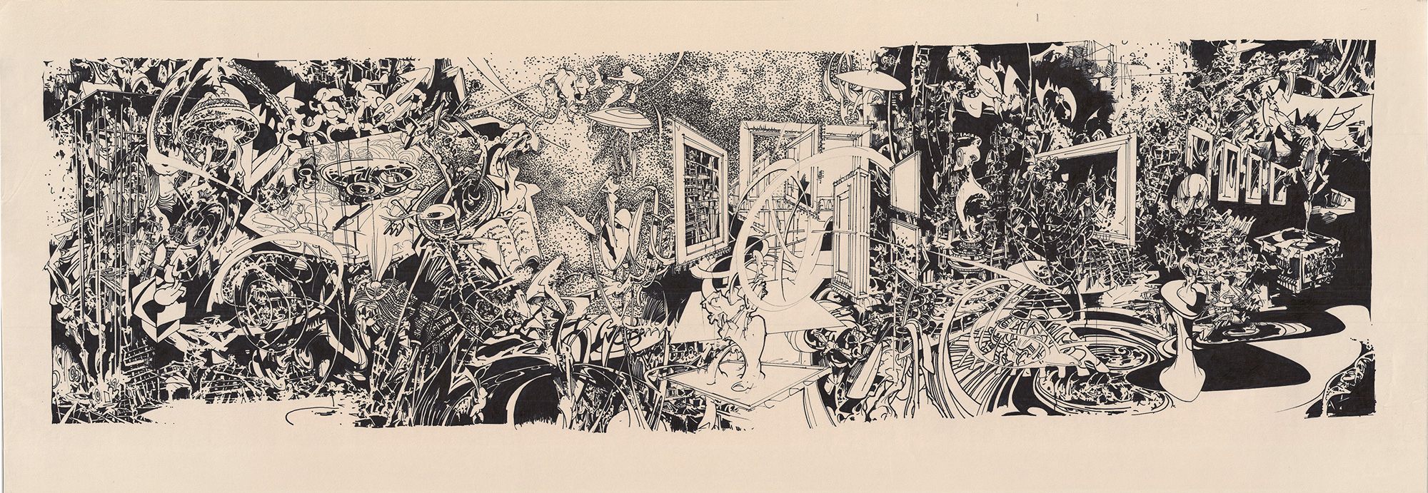 Spectacle - 137 x 49 cm. Original illustration by Ola Juliussen. Framed in glass and black wooden frame.