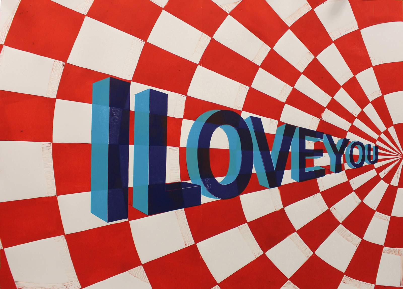 I Love You - 140 x 100 cm. Limited edition linocut print by Marta Banaszak