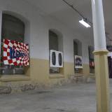 3-colour linocut printed, signed and dated by the artist. Partially hand-painted with acrylics (turquoise). On double FABRIANO Rosaspina Bianco 260 g paper (total size 140x100 cm).