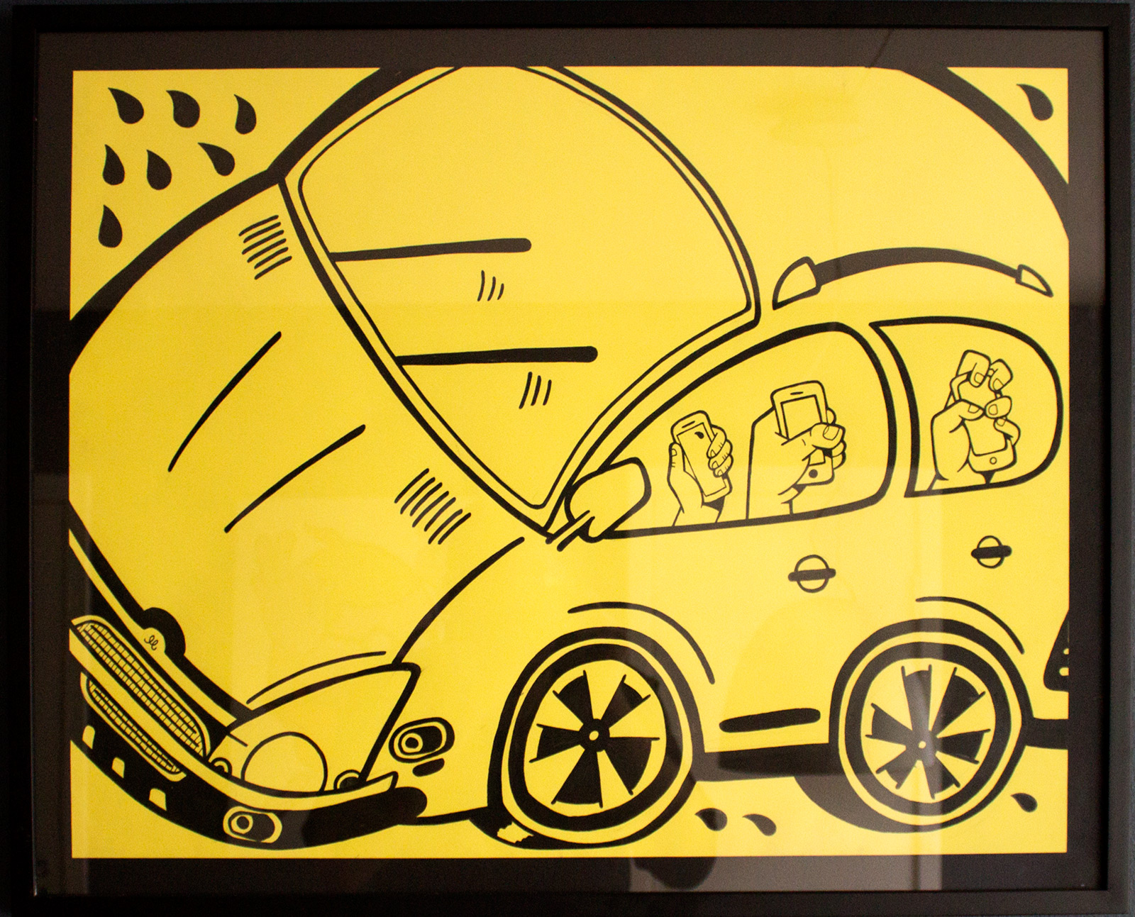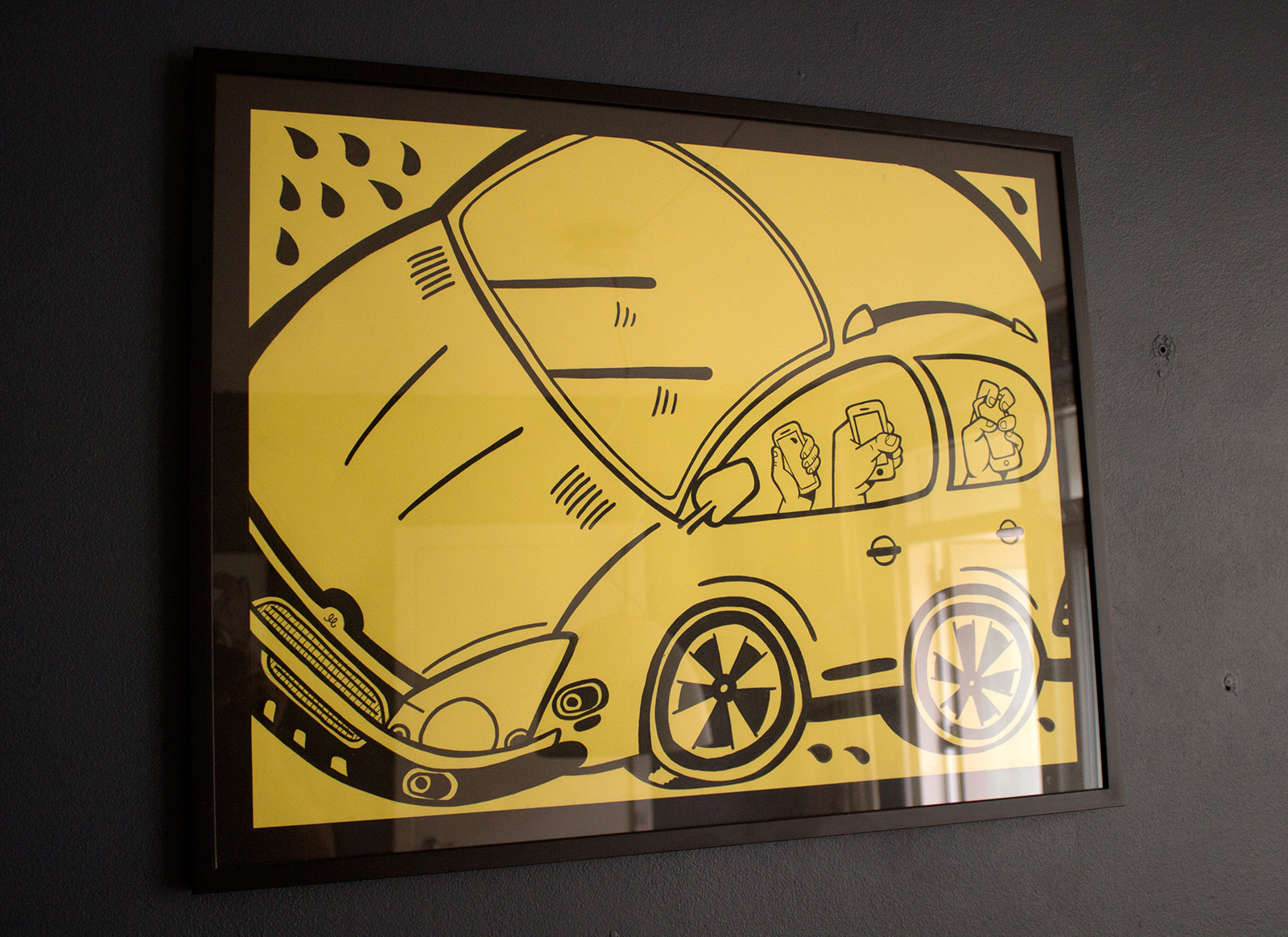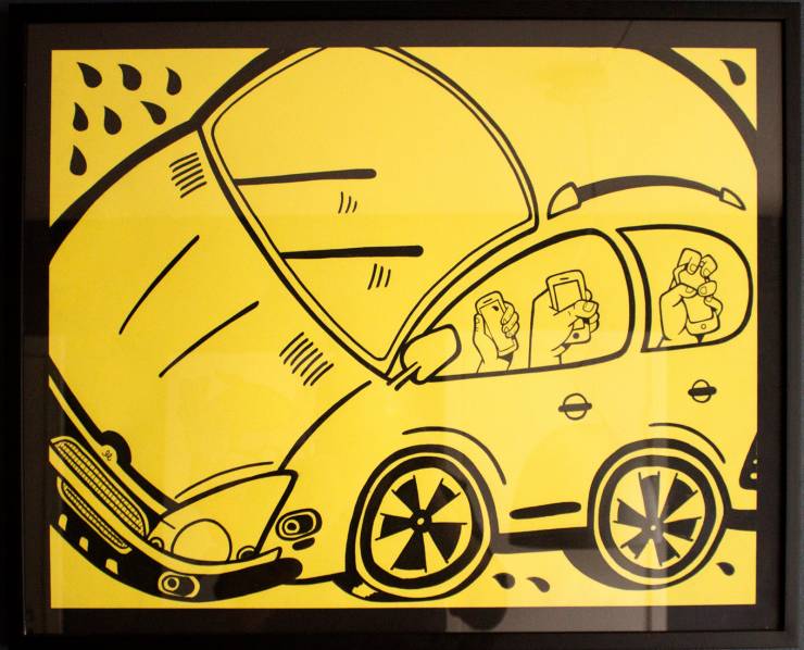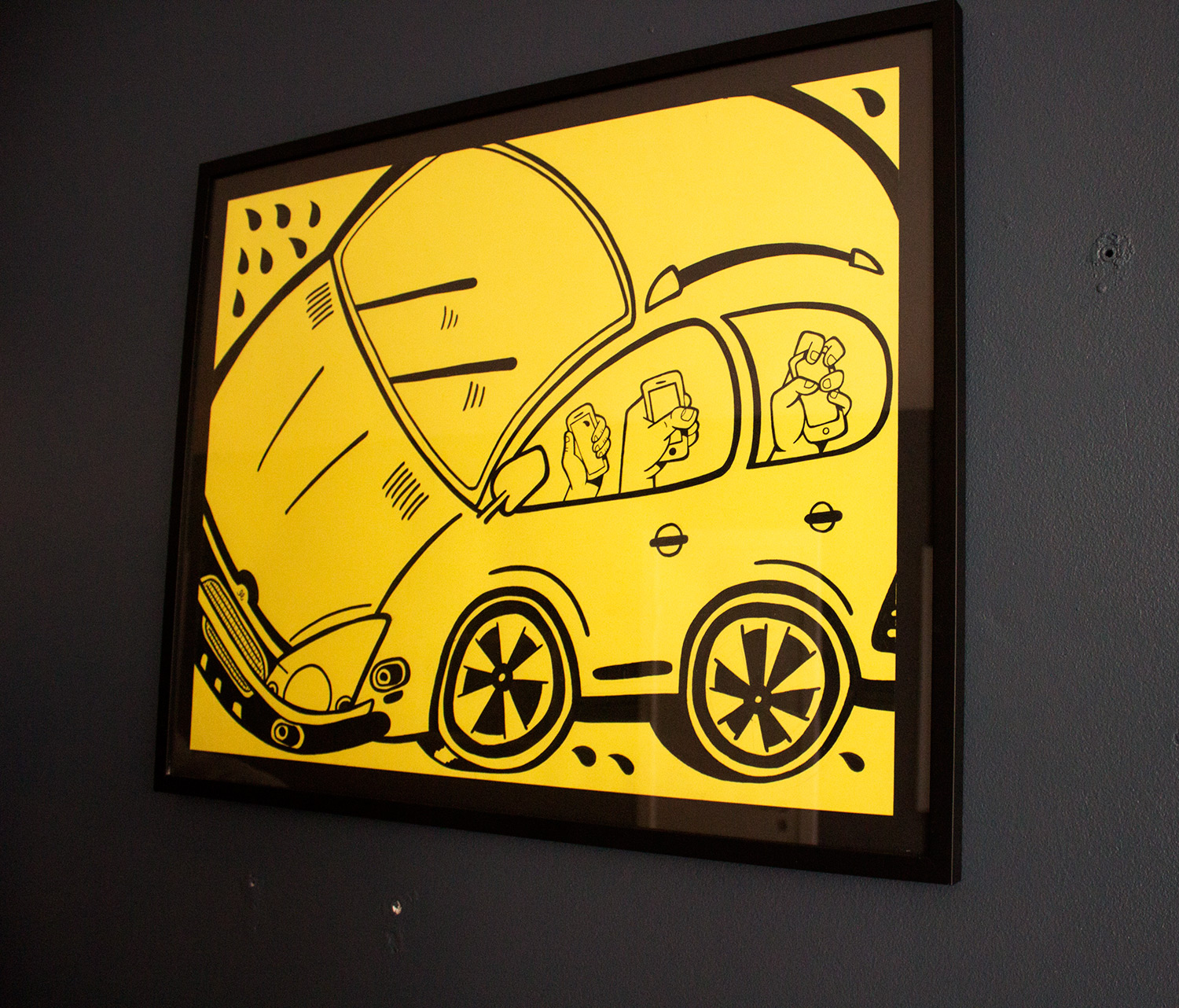 The style of drawing is young, fresh and easy to recognize as an illustration by the hand of Mormor with its very personal expression: Buildings, cities, figures and several other images appear with the well-known line in various medias. With a playfull approach he keeps on challenging his media, exploring several techniques of painting and printing and never ending the process of constantly renewing himself as an artist.
