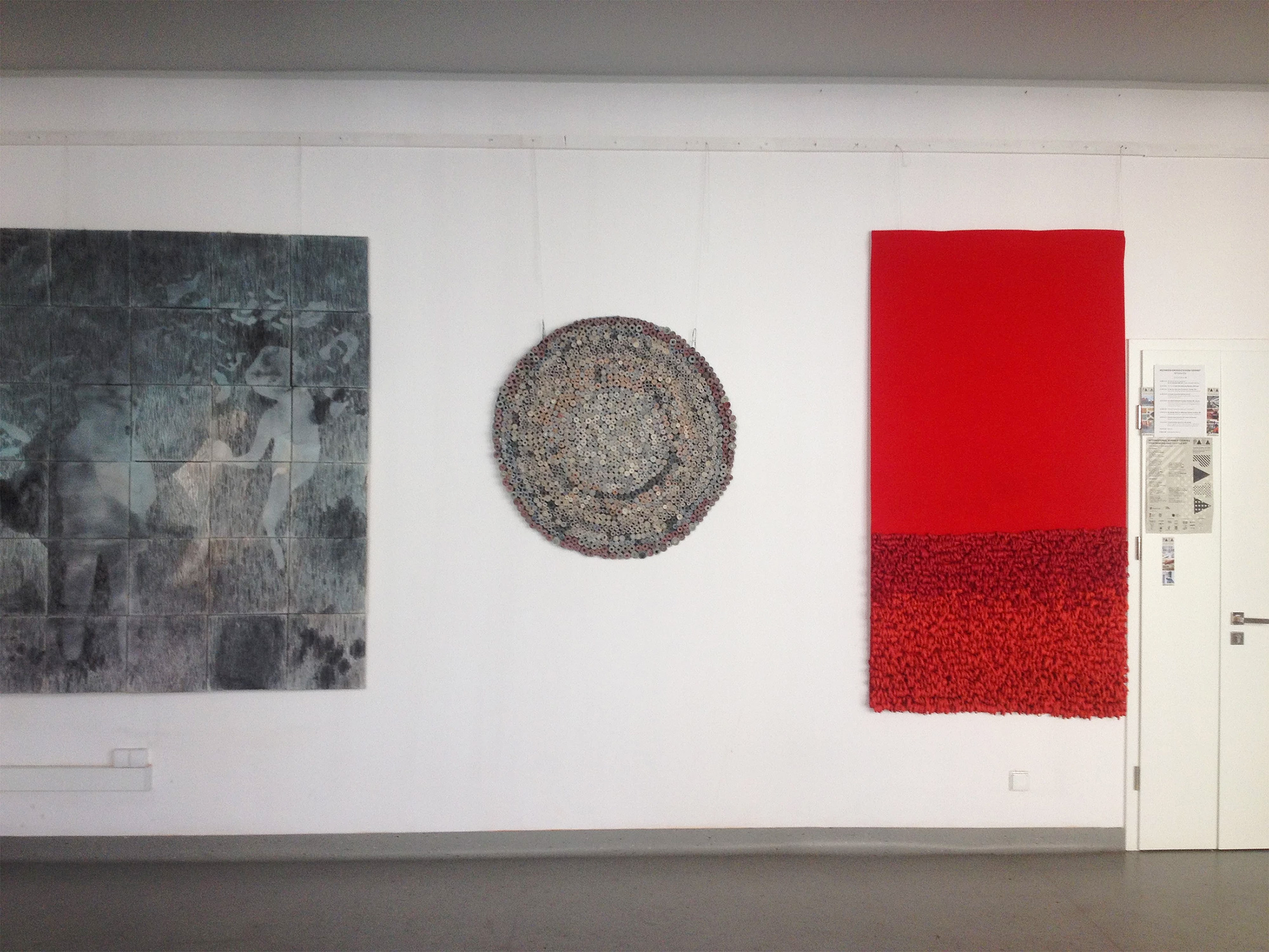 Own technique: Made by canvas sliced into stripes and rolled together.