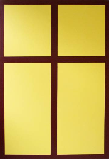 Seen from an art historic point of view Kirsten Rotboll Lassen's paintings seem to be engaged in a discussion with modernism, and that part of abstract painting that started with artists such as Wassily Kandinsky, Piet Mondrian and Kazimir Malevich. In Rotboll Lassen's case it is also interesting to look at a Sophie Taeuber (1889-1943), who with her patterned grids heralds the American Pattern and Decoration movement in the 1970s and especially Robert Delauney (1895-1941), who had his first breakthrough with a big series of, in fact, window images, Fenetres, made in 1911-12 and exhibited in 1913. Delaunay's pictures did not depict windows in the same concrete sense that Kirsten Rotboll does. His pictures were rather windows into the painting than to the world. - Kristine Kern, marts 2007