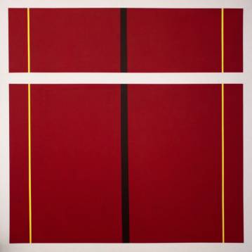 The general impression is almost graphic, characterized by large surfaces and vertical and horizontal lines. Rotboll Lassen has moved in the direction of the empty space, where monochrome color-surfaces dominate the canvasses, and she seems to be focussed on how little is actually necessary. Empty space and the non-narrative aspect make the paintings more open in relationship to the observer. You can think with the picture, instead of having everything spelled out. Kirsten Rotboll Lassen mixes elements from art history and small everyday details (like the pattern on a window shade seen in passing) with elements she has made up herself.