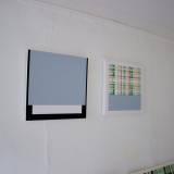 The general impression is almost graphic, characterized by large surfaces and vertical and horizontal lines. Rotboll Lassen has moved in the direction of the empty space, where monochrome color-surfaces dominate the canvasses, and she seems to be focussed on how little is actually necessary. Empty space and the non-narrative aspect make the paintings more open in relationship to the observer. You can think with the picture, instead of having everything spelled out. Kirsten Rotboll Lassen mixes elements from art history and small everyday details (like the pattern on a window shade seen in passing) with elements she has made up herself.